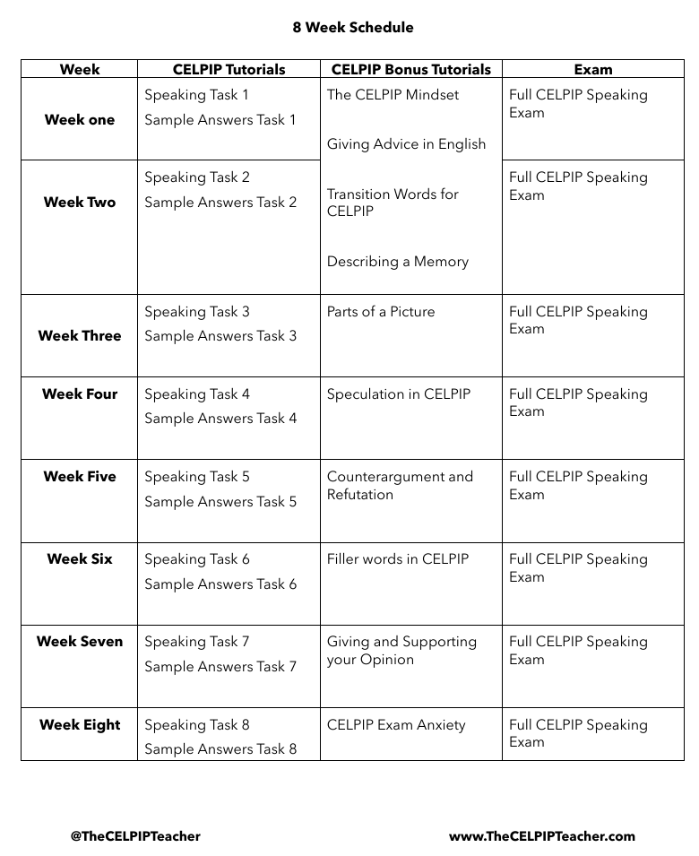 Try and stick to the CELPIP Mastermind Speaking Schedule as much as possible